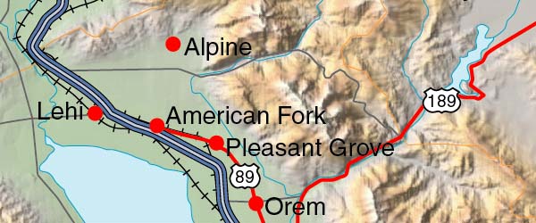 ![]() Detail View of the Cartographic style relief rendering when placed under the Vector EPS map. Any of the 5 relief styles may be used as alternative background textures to customize this map. Contrast of the relief map layer may be dimmed by adjusting the opacity - for Utah is set to 70%. Select the Relief & EPS Map Package of Utah option to download this style map collection. |