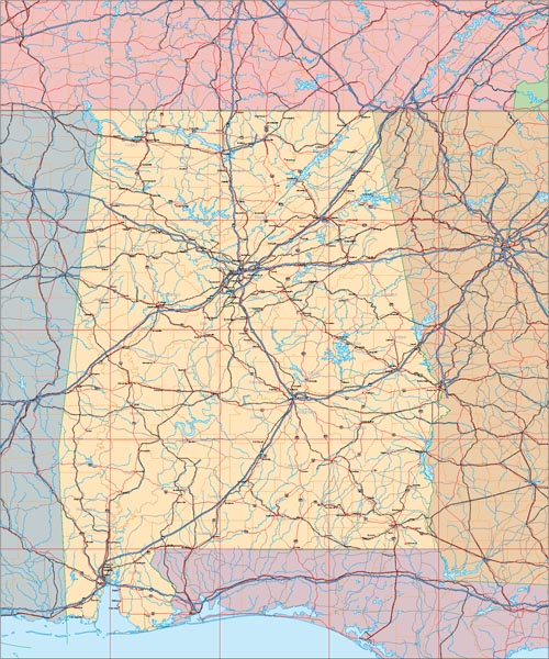 Map identification:   Alabama Projection system:   Geographic / Plate Carree