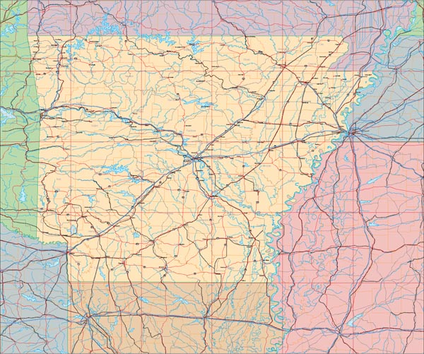 ![]() Detail view of EPS Vector Map of Arkansas - the land fill color is switched on. The EPS Vector map for Arkansas has 26 or more layers which may be individually modified or removed. Select the Vector only EPS map of Arkansas option to download this style map. |