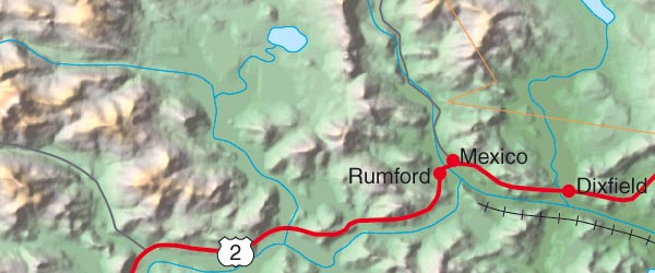 ![]() Detail View of the Cartographic style relief rendering when placed under the Vector EPS map. Any of the 5 relief styles may be used as alternative background textures to customize this map. Contrast of the relief map layer may be dimmed by adjusting the opacity - for Maine is set to 60%. Select the Relief & EPS Map Package of Maine option to download this style map collection. |