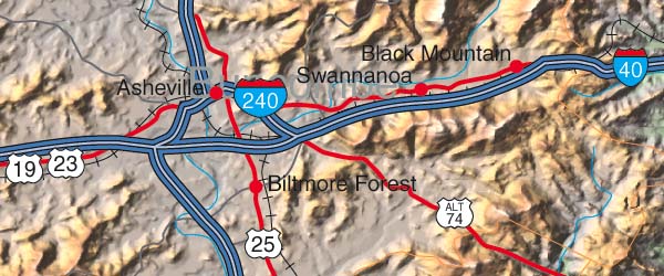 ![]() Detail View of the Cartographic style relief rendering when placed under the Vector EPS map. Any of the 5 relief styles may be used as alternative background textures to customize this map. Contrast of the relief map layer may be dimmed by adjusting the opacity - for North Carolina is set to 80%. Select the Relief & EPS Map Package of North Carolina option to download this style map collection. |