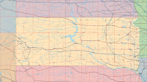 ![]() Detail view of EPS Vector Map of South Dakota - the land fill color is switched on. The EPS Vector map for South Dakota has 25 layers which may be individually modified or removed. Select the Vector only EPS map of South Dakota option to download this style map. |